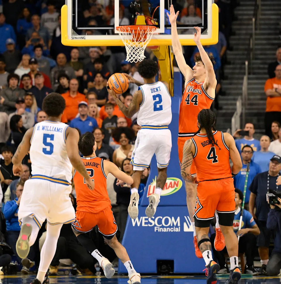 Just as their victory over Missouri on Dec. 22 sparked a 12-game winning streak for the Illini, a run that included three wins against top-20 teams — including two impressive victories over #4 Purdue and #5 Nebraska — the loss in OT at East Lansing on Feb. 7 triggered a serious backslide for Illinois that would see them go 2-4, including three OT losses. The worst of those came on the road at UCLA, where the Illini had a 23-point lead at the 9:27 mark of the first half, only to lead by 7 at halftime. They then lost in OT on a length of the court drive by Donovan Dent in only 4 seconds to lose by one. Then the domination of Illinois by Michigan, losing by 14 at home. The two wins in the middle of all of this were runaway victories vs. Indiana, 71-51, and USC, 101-65. But they didn’t feel like they were “team wins”. They were more of a step-through practice.