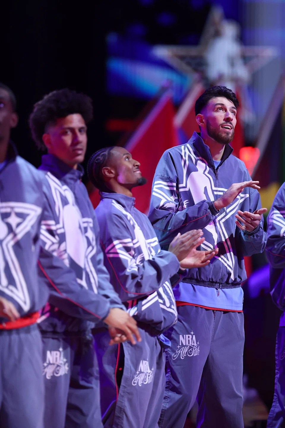 INGLEWOOD, CALIFORNIA – FEBRUARY 15: Chet Holmgren #7 of the Oklahoma City Thunder and Team USA Stars claps before the 75th NBA All-Star Game at Intuit Dome on February 15, 2026 in Inglewood, California. (Photo by Ronald Martinez/Getty Images)