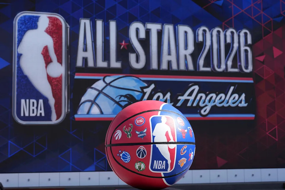 Feb 12, 2026; Inglewood, California, USA; The All Star 2026 logo at the Intuit Dome. Mandatory Credit: Kirby Lee-Imagn Images