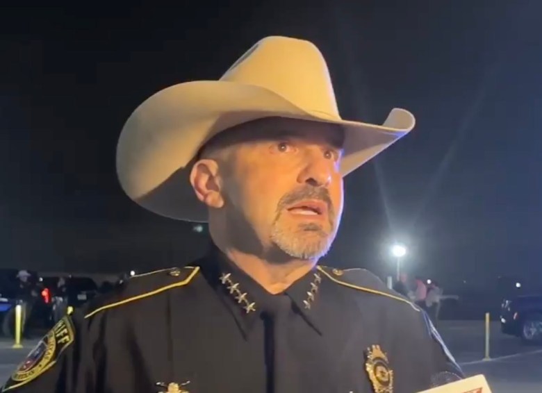Bexar County Sheriff Javier Salazar speaks to reporters after a shooting in the Frost Bank Center parking lot. Credit: Facebook / Bexar County Sheriff’s Office