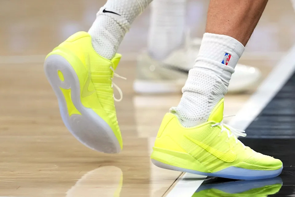 Detailed view of the shoes worn by Detroit Pistons forward Duncan Robinson (55) before the game against the San Antonio Spurs at Frost Bank Center in San Antonio on Thursday, March 5, 2026.