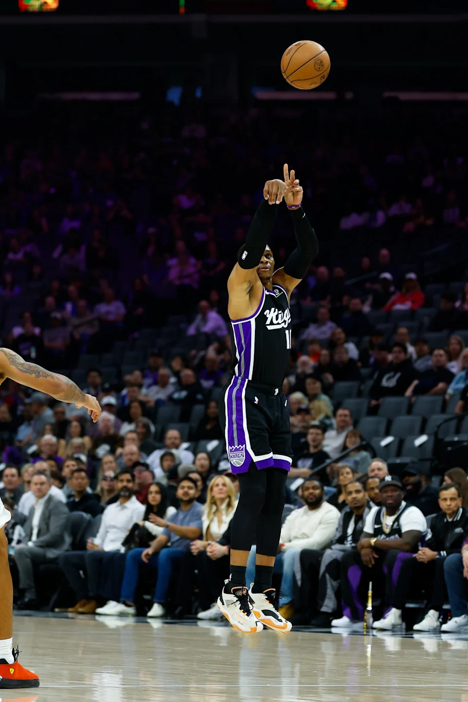 Mar 10, 2026; Sacramento, California, USA; Sacramento Kings guard Russell Westbrook (18) scores a basket during the first quarter against the Indiana Pacers at Golden 1 Center. Mandatory Credit: Sergio Estrada-Imagn Images