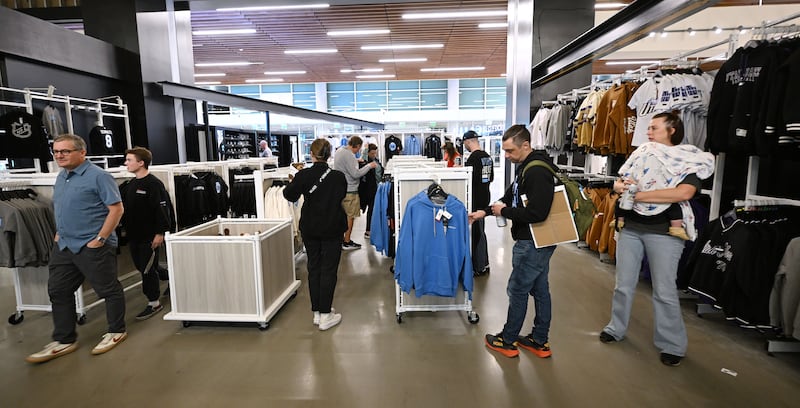 Fans shop in the team store as the Utah Hockey Club opens its inaugural season against the Los Angeles Kings in the Delta Center in Salt Lake City on September 23, 2024. Utah won 2-3 in overtime. | Scott G Winterton, Deseret News