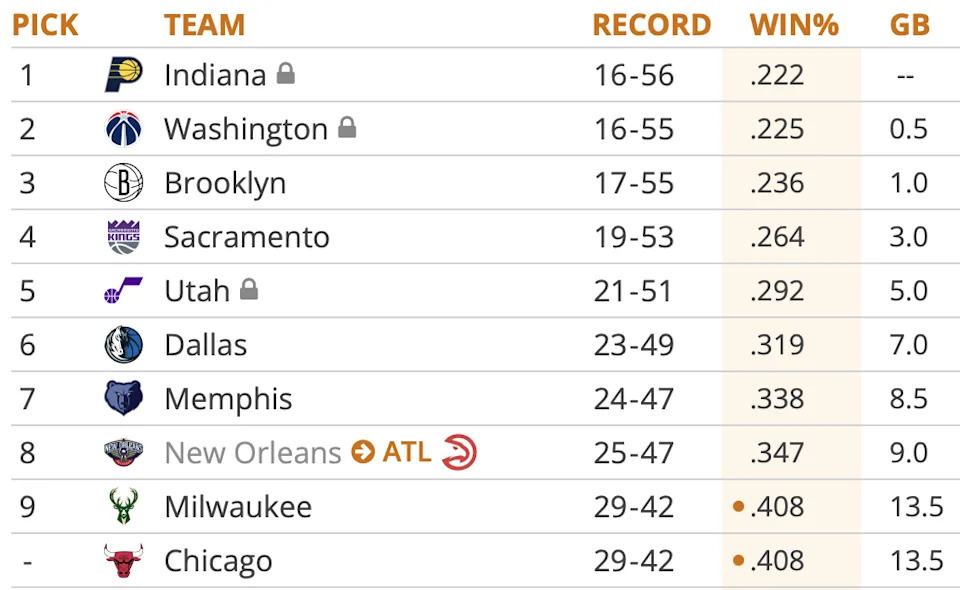 Here’s an updated look at the standings, courtesy of Tankathon…