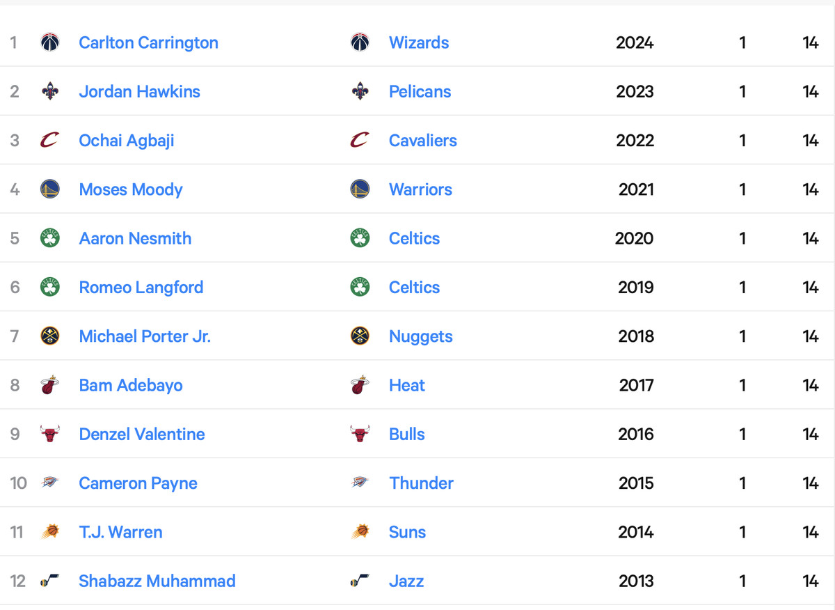 Chet Homlgren spent his rookie season out, but came in second in 2024 for Rookie of the Year voting behind Victor Wembanyama. Holmgren is currently in the Western Conference Finals duking it out with the Oklahoma City Thunder.