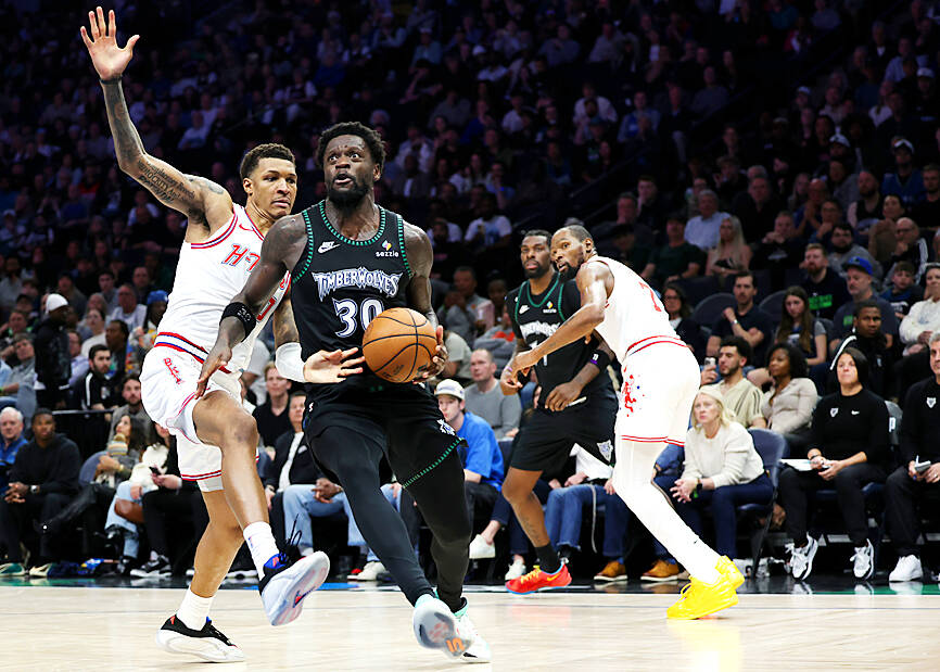 Superstar Anthony Edwards was sidelined for a fifth straight game with knee trouble. Key backup Ayo Dosunmu was out, too, with a sore calf. Jaden McDaniels, who had 25 points and valiant defense on Rockets star Kevin Durant all night, started hobbling down the stretch of the fourth quarter and had to be pulled. Rudy Gobert, who had a steely 14 points, 14 rebounds and five blocks, fouled out.