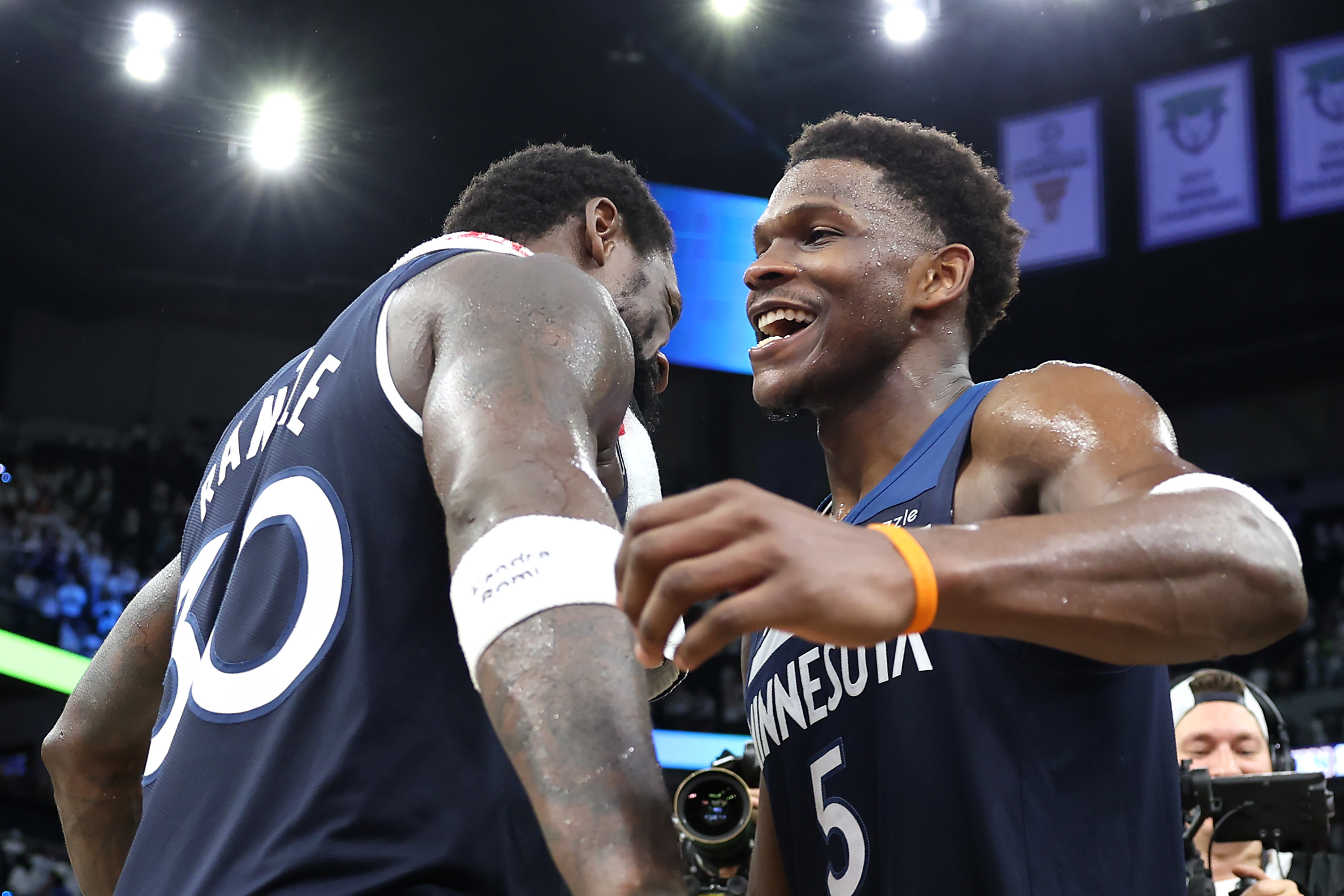 GettyMINNEAPOLIS, MINNESOTA – MAY 14: Julius Randle #30 and Anthony Edwards #5 of the Minnesota Timberwolves celebrate after defeating the Golden State Warriors in Game Five of the Western Conference Second Round NBA Playoffs at Target Center on May 14, 2025 in Minneapolis, Minnesota. (Photo by Ellen Schmidt/Getty Images)