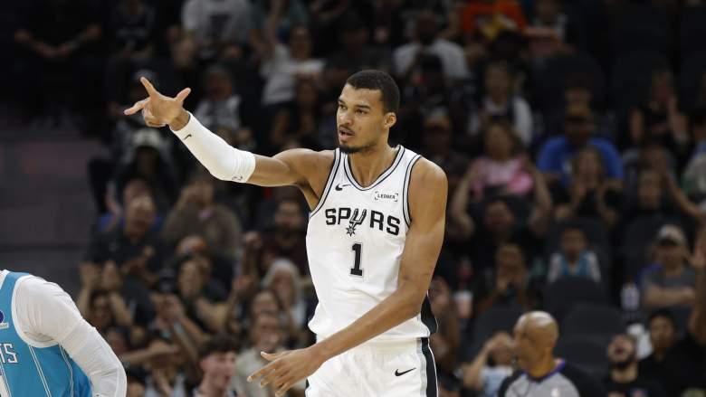 GettySAN ANTONIO, TX -MARCH 14: Victor Wembanyama #1 of the San Antonio Spurs reacts after a three against Charlotte Hornets in the first half at Frost Bank Center on March 14, 2026 in San Antonio, Texas. NOTE TO USER: User expressly acknowledges and agrees that, by downloading and or using this photograph, User is consenting to terms and conditions of the Getty Images License Agreement. (Photo by Ronald Cortes/Getty Images)