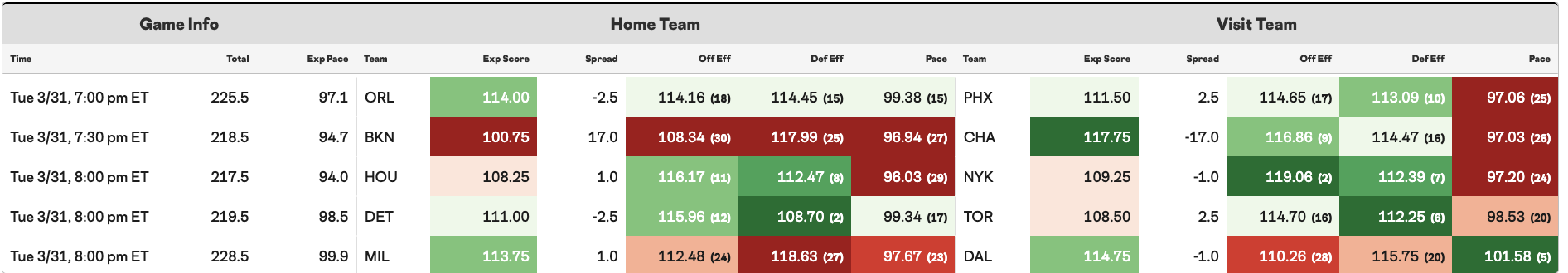 We have a few spots to wait on, as Toronto, Phoenix and Brooklyn all have some questionable tags that need to be resolved before tip-off. There’s no clear winner in the race for projected totals tonight, but the massive spread between Charlotte and Brooklyn appears to be the most significant piece of Vegas data. I bought into some Hornets in hopes that they don’t clear the bench.