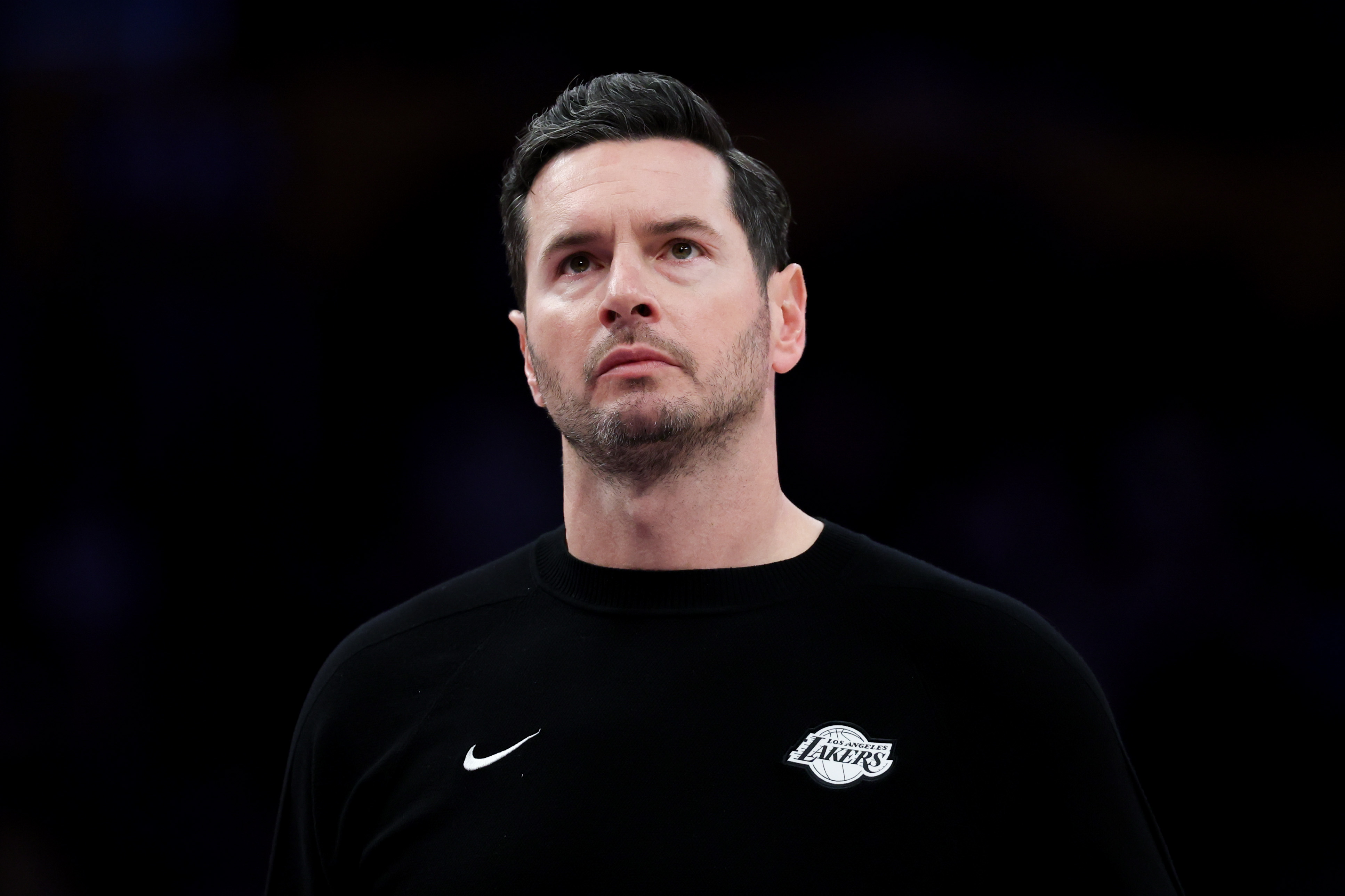 GettyLos Angeles Lakers head coach JJ Redick stands on the court during a timeout during the second half of an NBA basketball game against the Sacramento Kings at Crypto.com Arena on Sunday, Dec. 28, 2025 in Los Angeles, CA.