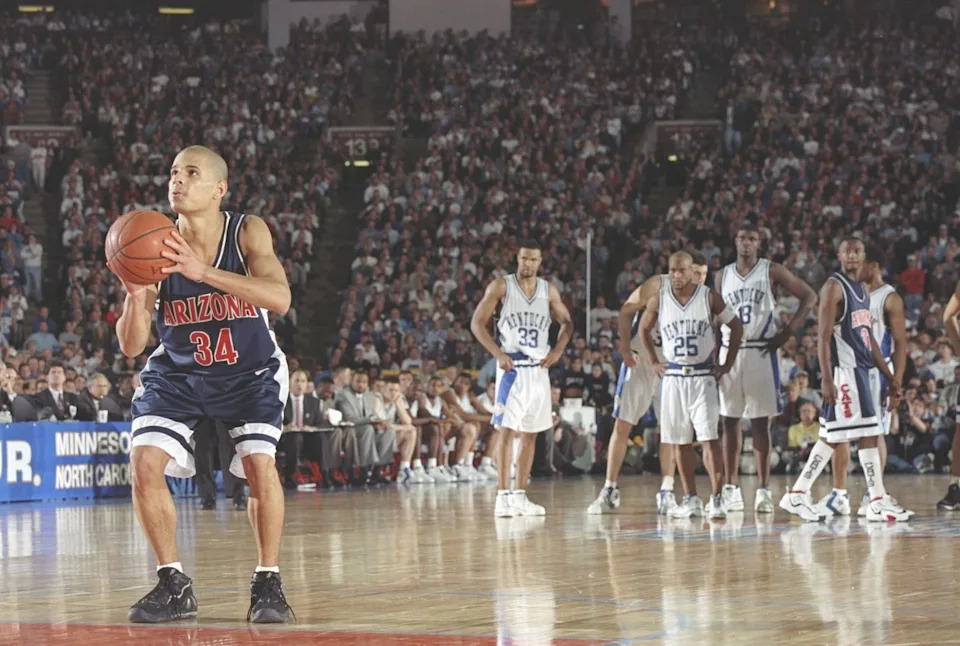 31 Mar 1997: Guard Miles Simon of the Arizona Wildcats prepares to soot the ball during the NCAA Championship game against the Kentucky Wildcats at the RCA Dome in Indianapolis, Indiana. Arizona won the game 84-73.