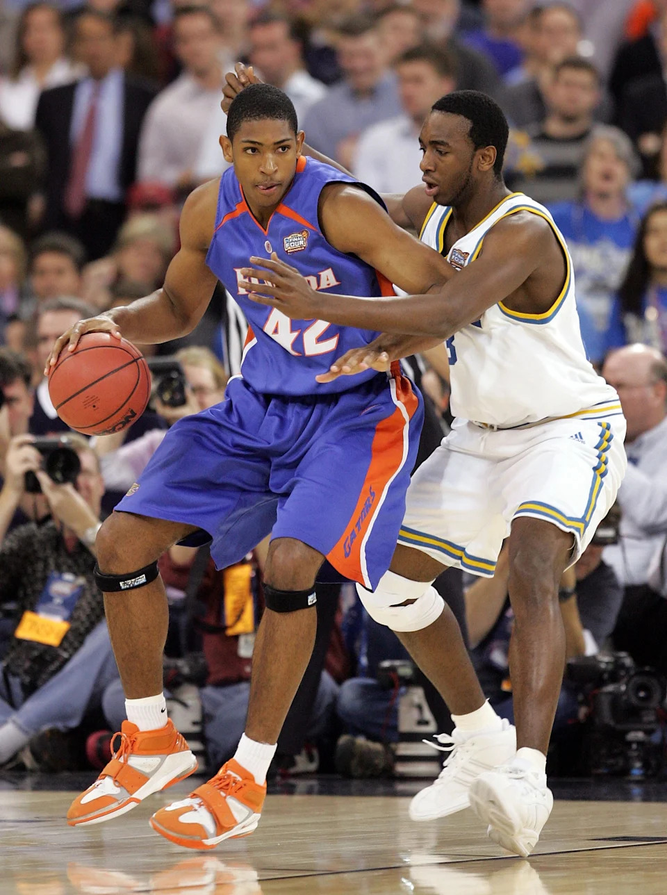 INDIANAPOLIS – APRIL 03: Al Horford #42 of the Florida Gators posts up against Luc Richard Mbah a Moute #23 of the UCLA Bruins during the National Championship game of the NCAA Men’s Final Four on April 3, 2006 at the RCA Dome in Indianapolis, Indiana. The Gators defeated the Bruins 73-57 to become national champions. (Photo by Andy Lyons/Getty Images)