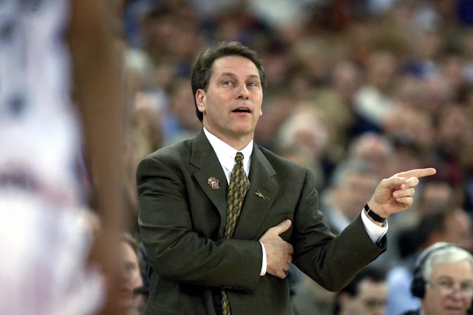 Michigan State coach Tom Izzo points during the first half against Florida in the NCAA tournament championship game April 3, 2000 at the RCA Dome in Indianapolis.