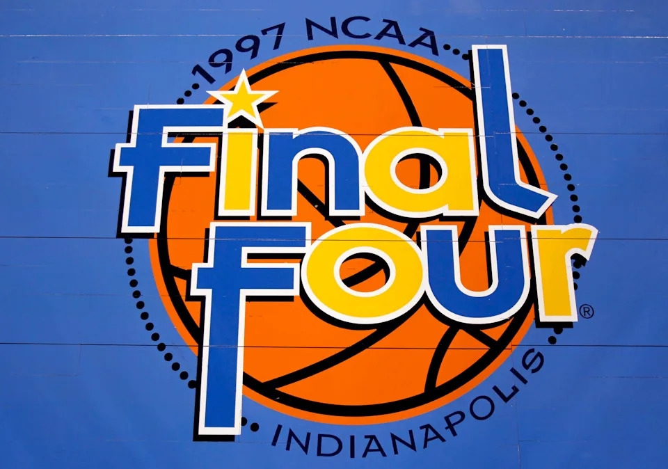 Apr 1, 2010; Indianapolis, IN, USA; A view of the 1997 Final Four logo in preparation for the Final Four of the 2010 NCAA mens basketball tournament at Lucas Oil Stadium. Mandatory Credit: Bob Donnan-USA TODAY Sports