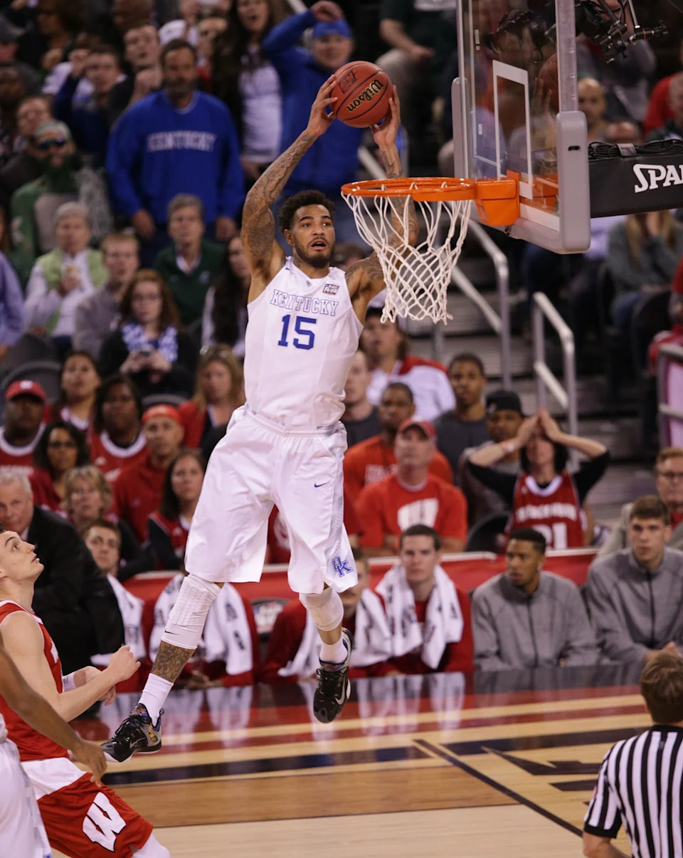 John Calipari’s Kentucky teams infamously produced elite NBA talent and his 2015 team entered the Final Four in Indianapolis 38-0, only to lose to Wisconsin. The Wildcats featured nine players who would make the NBA: star freshmen Karl-Anthony Towns and Devin Booker, classmates Trey Lyles and Tyler Ulis, sophomores Aaron and Andrew Harrison, and Dakari Johnson, and juniors Willie Cauley-Stein and Alex Poythress.