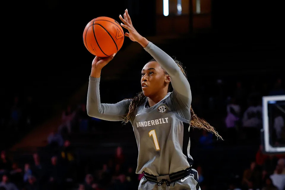 NASHVILLE, TENNESSEE – FEBRUARY 02: Mikayla Blakes #1 of the Vanderbilt Commodores shoots a three-point basket during the second half against the Ole Miss Rebels at Vanderbilt University Memorial Gymnasium on February 02, 2025 in Nashville, Tennessee. (Photo by Johnnie Izquierdo/Getty Images)