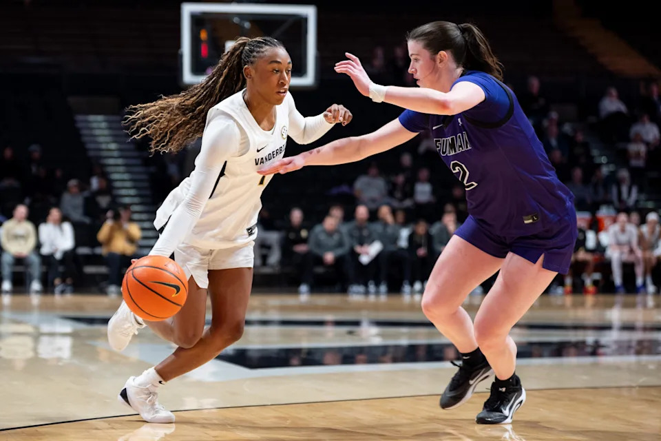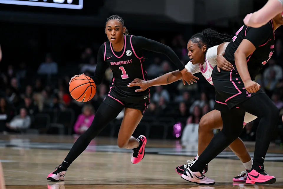 NASHVILLE, TENNESSEE – FEBRUARY 9: Mikayla Blakes #1 of the Vanderbilt Commodores drives towards the basket against the Oklahoma Sooners in the first half at Vanderbilt University Memorial Gymnasium on February 9, 2026 in Nashville, Tennessee.