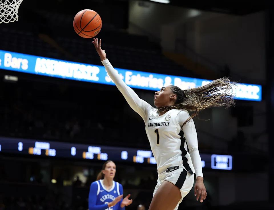Vanderbilt’s Mikayla Blakes (1) shoots the ball during their game against Kentucky at Vanderbilt’s Memorial Gym Sunday, Feb. 22, 2026.