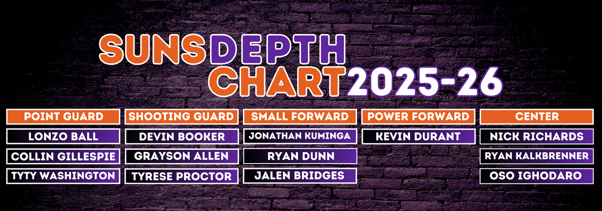 Before discussing who I believe the Suns should target in this draft, let’s assess the roster’s current state by reviewing the depth chart with the seven players under contract (after bidding adieu to Beal, Martin, and Micic).