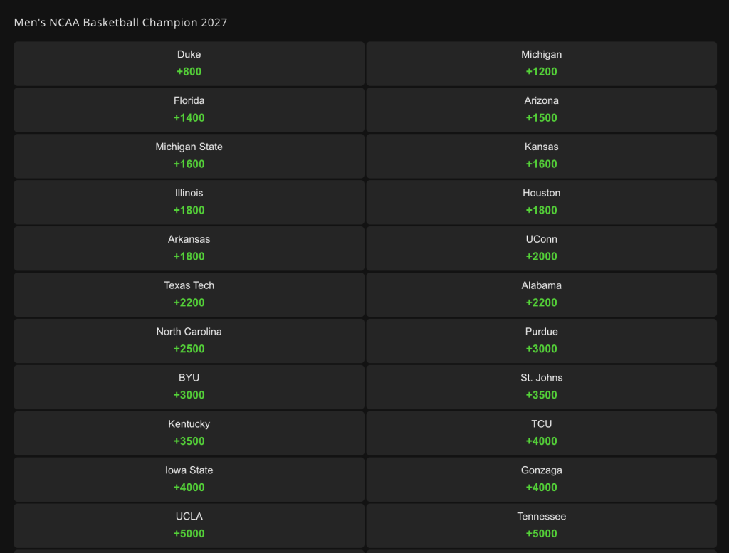 The buzzer has sounded. The nets are cut. Michigan is your 2026 NCAA men’s basketball champion. But as the confetti falls, we can already look to next season to get a jump on picking the next winner. The 2027 odds are live on DraftKings Sportsbook. Here is a look at some of the top contenders: