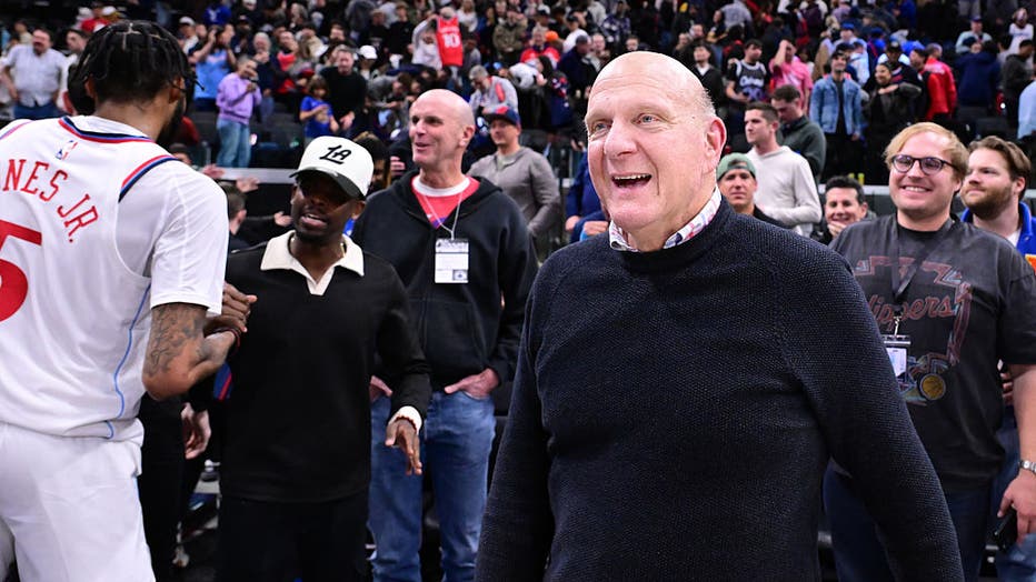 Los Angeles Clippers owner Steve Ballmer celebrates after the Clippers defeated the Denver Nuggets at Intuit Dome on February 19, 2026 in Inglewood, California.(Photo by Wally Skalij/Getty Images) (Getty Images)