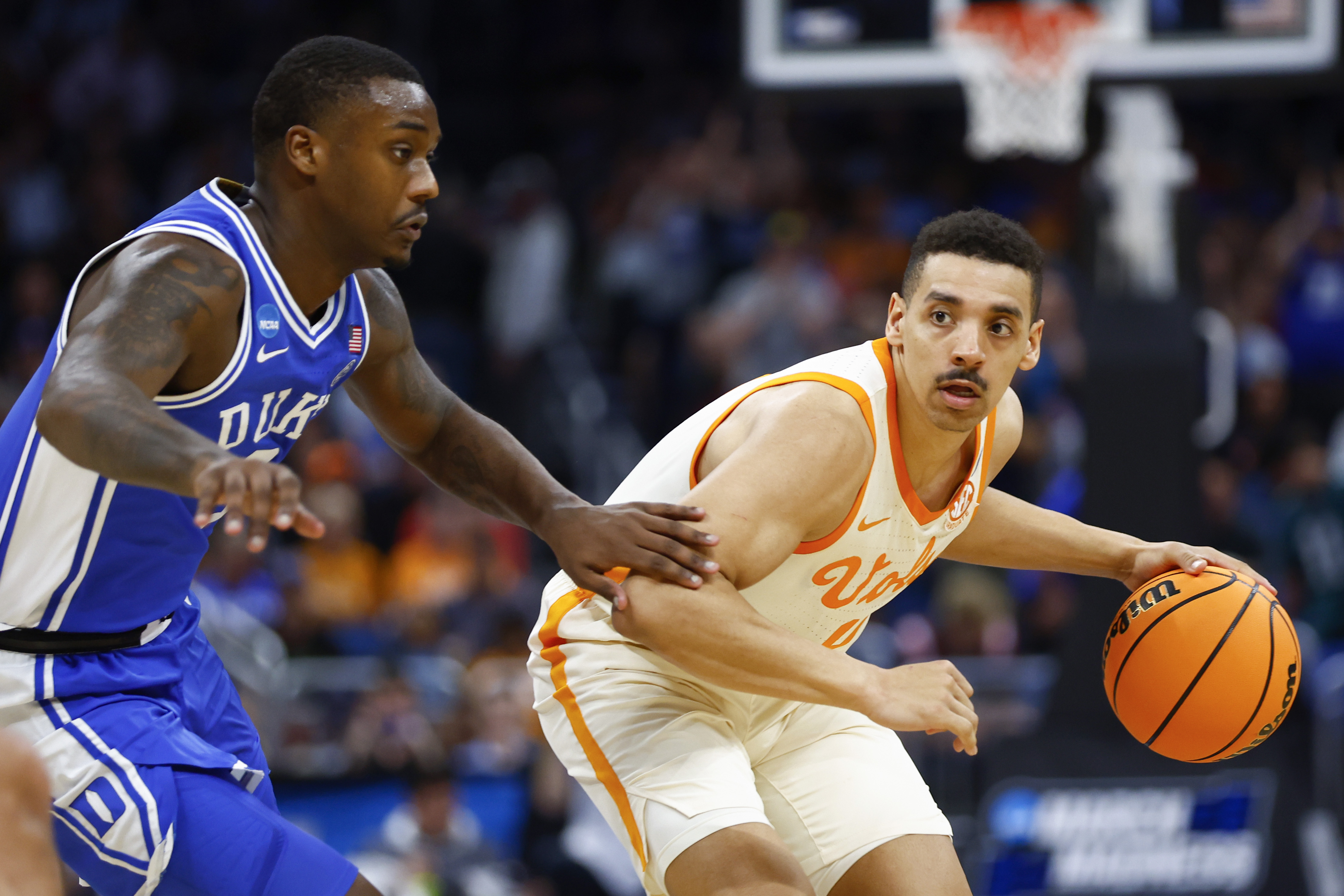 GettyTyreke Key #4 of the Tennessee Volunteers dribbles the ball against the Duke Blue Devils during the second half in the second round of the NCAA Men’s Basketball Tournament at Amway Center on March 18, 2023 in Orlando, Florida.