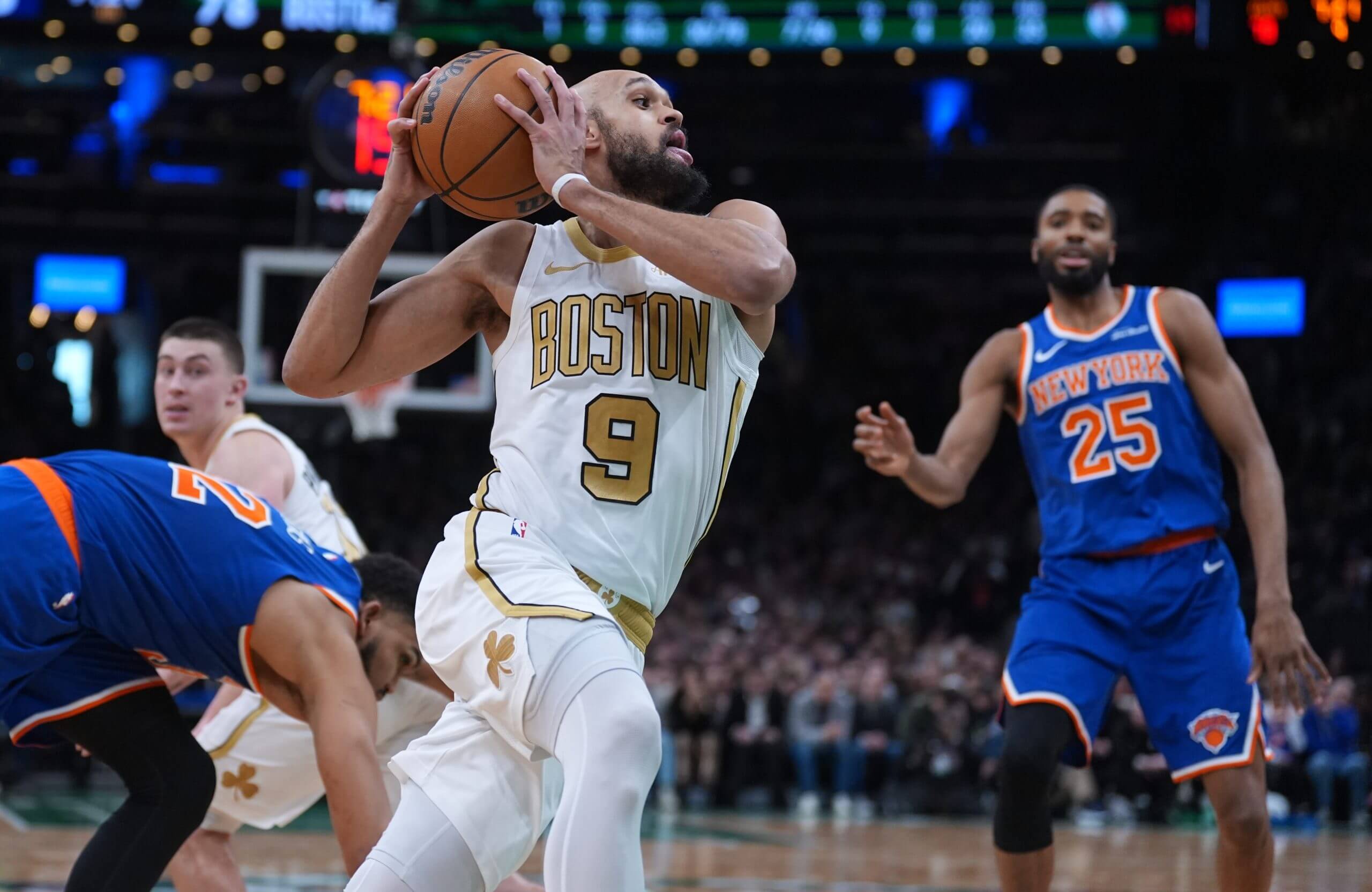 Can Derrick White and the Celtics hold off the Knicks for the East’s No. 2 seed? (David Butler II / Imagn Images)