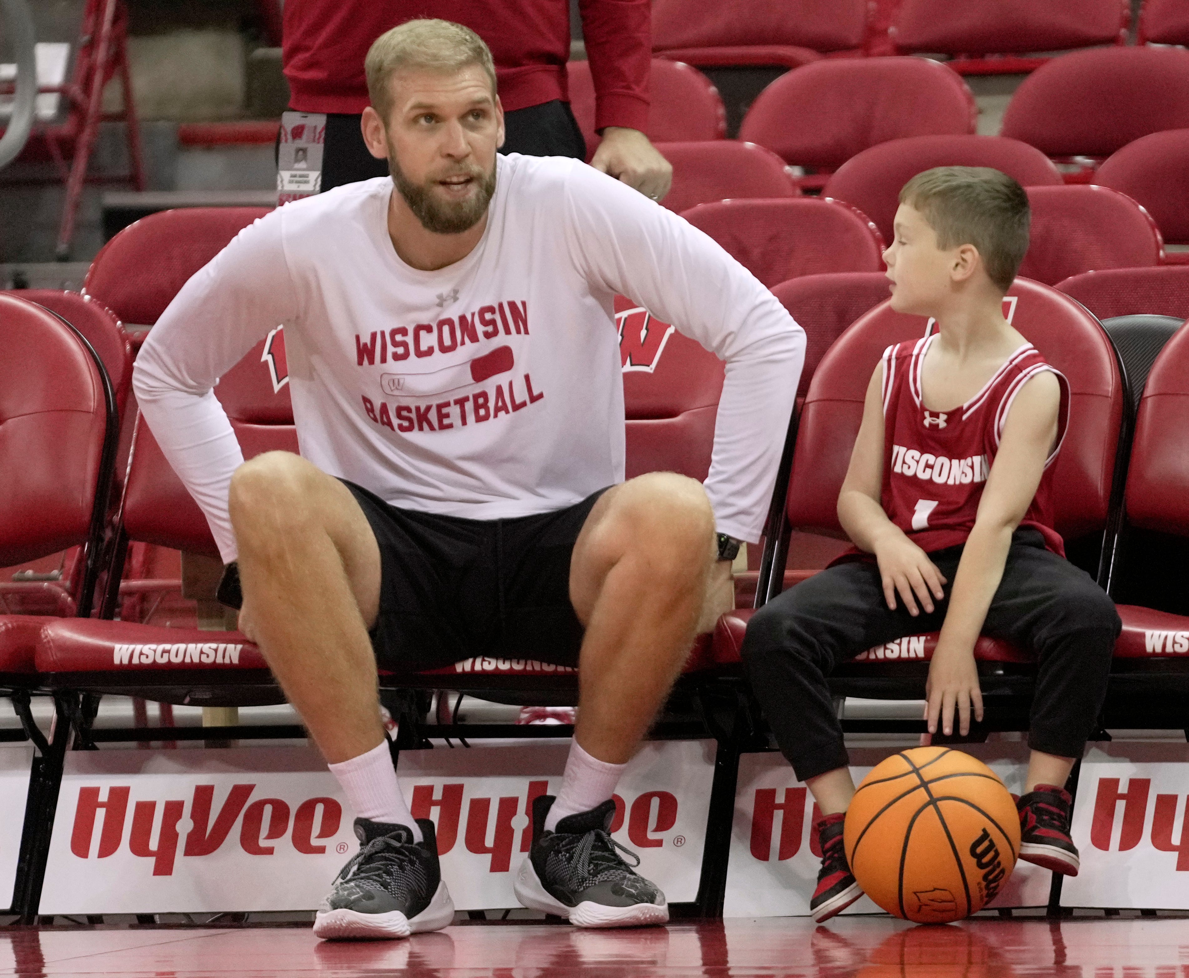 Greg Stiemsma, director of player development, is shown before a Wisconsin men’s basketball scrimmage Sunday, October 19, 2025 at the Kohl Center in Madison, Wisconsin.