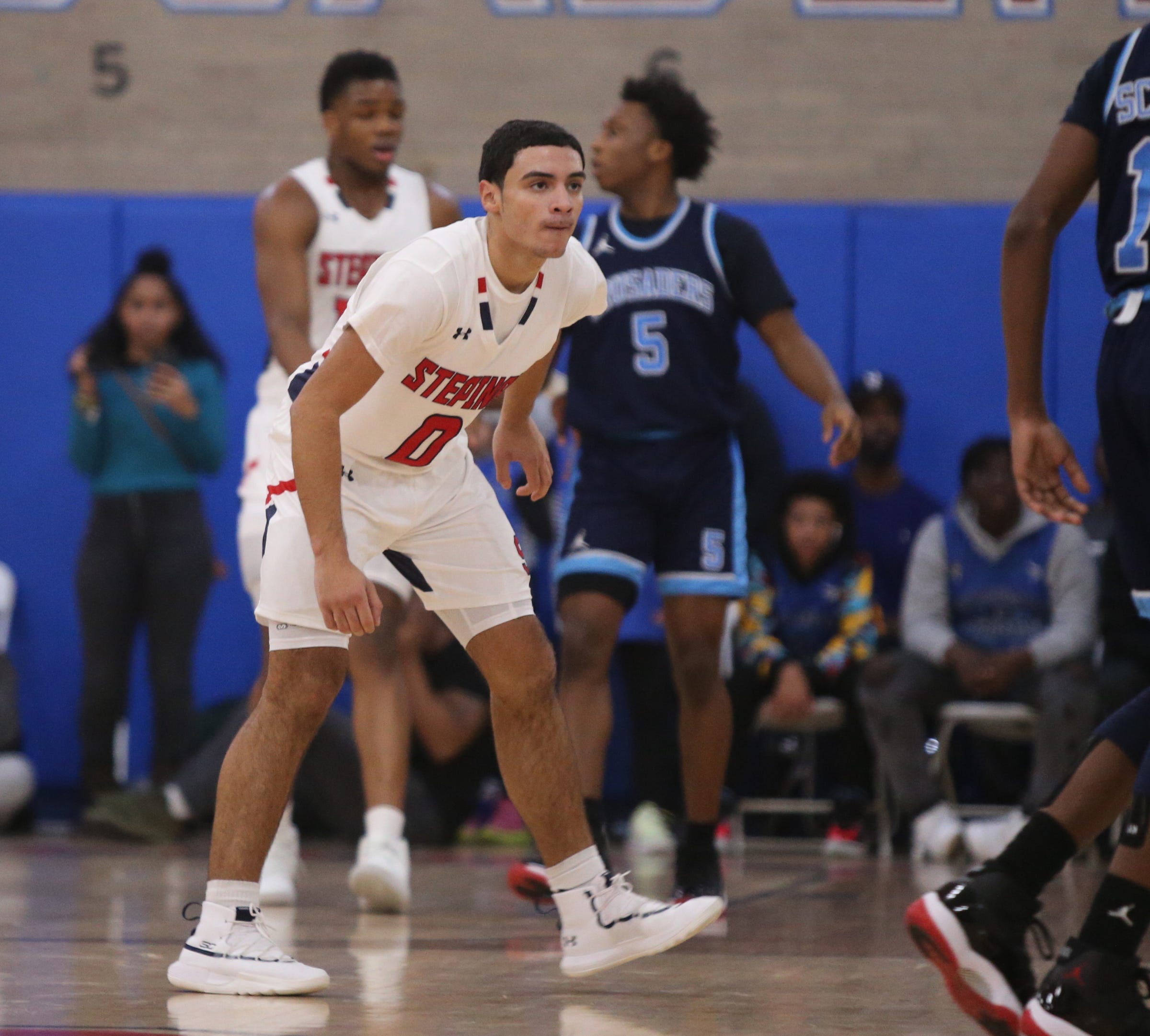 Stepinac’s Justin Morety (0) on defense during their 81-69 win over Monsignor Scanlan at Stepinac High School in White Plains on Friday, December 6, 2019. Stepinac Bball