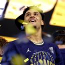 Jalen Brunson after winning his second national title with Villanova in 2018. AP Photo/Eric Gay