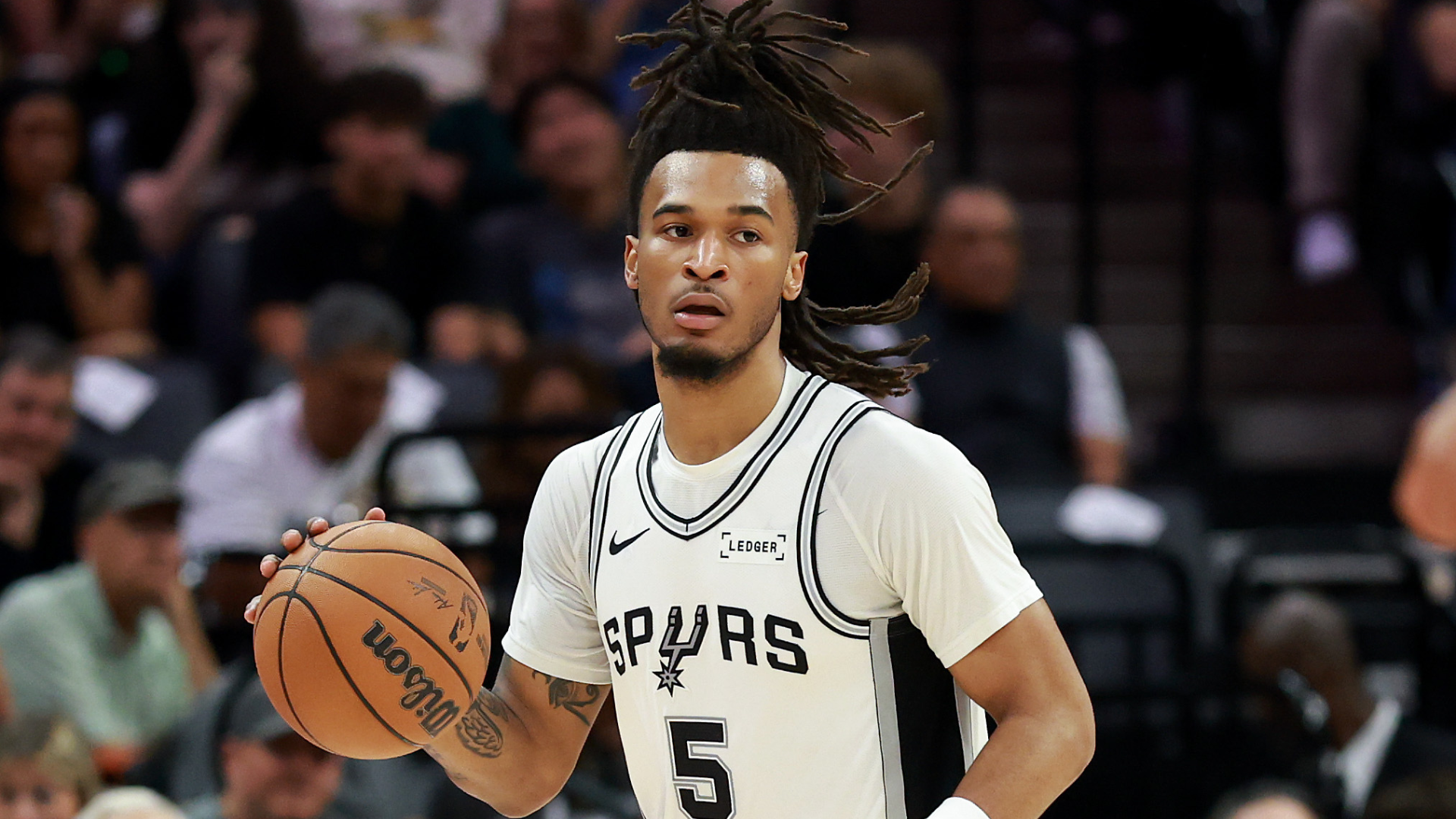 Stephon Castle of the San Antonio Spurs during an NBA game.