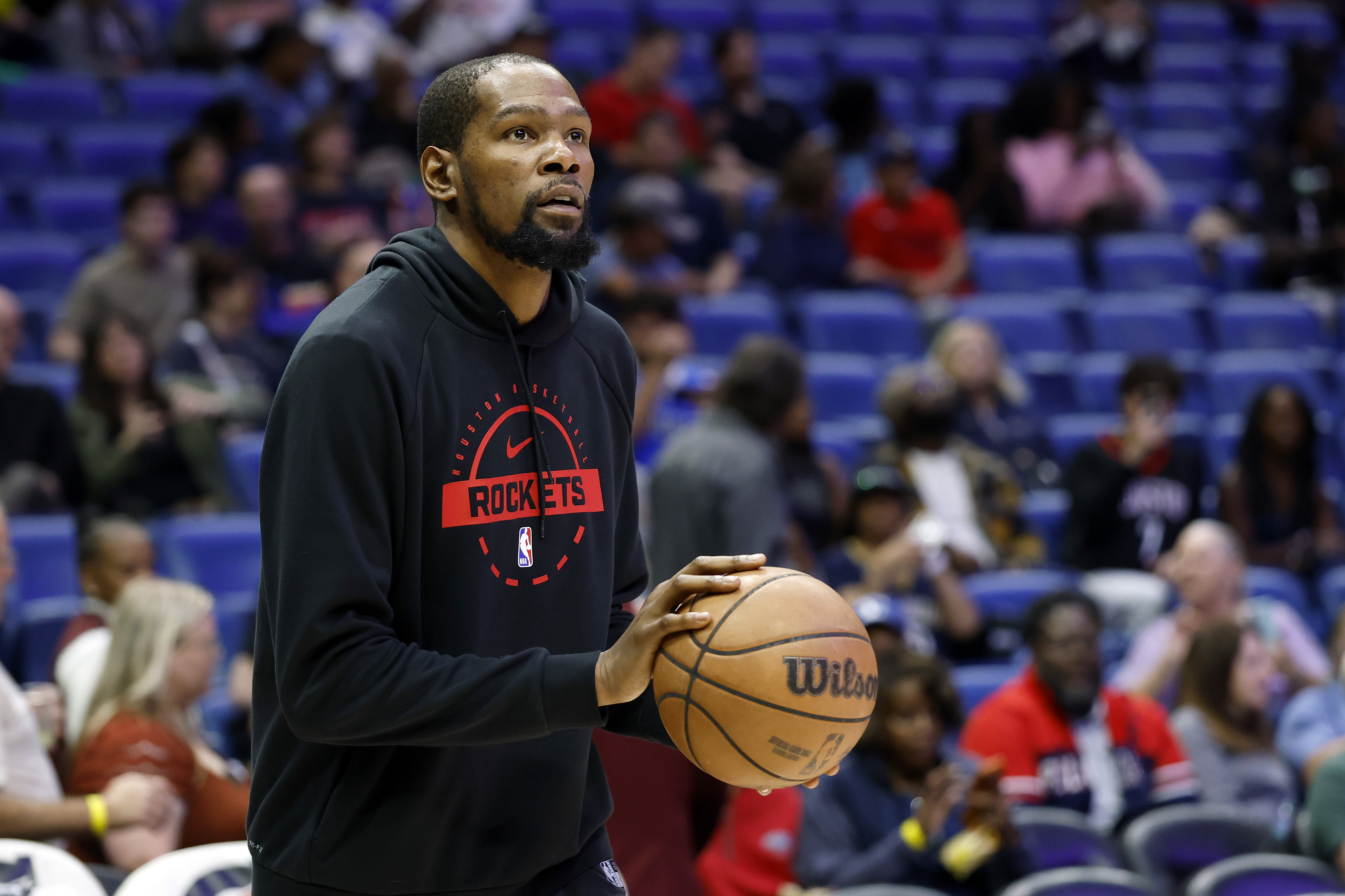 GettyKevin Durant #7 of the Houston Rockets warms up prior to a game against the New Orleans Pelicans at Smoothie King Center on March 29, 2026 in New Orleans, Louisiana.