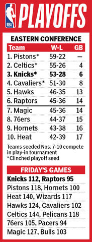 Along with the Celtics’ rout of the Pelicans and Cavaliers’ loss to the Hawks, it locks the Knicks into the No. 3 seed in the East.