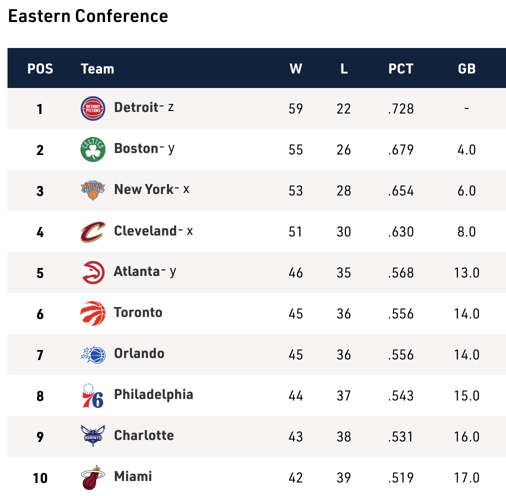 And not for nothing, the Charlotte Hornets and Heat will be jockeying on Sunday for the right to host a No. 9 versus No. 10 matchup to open the Play-In tournament. Charlotte clinches the ninth spot with a win over New York OR a Miami loss to Atlanta. And the opposite is required for the Heat, who need a win and a Hornets loss to the Knicks to secure the nine seed.