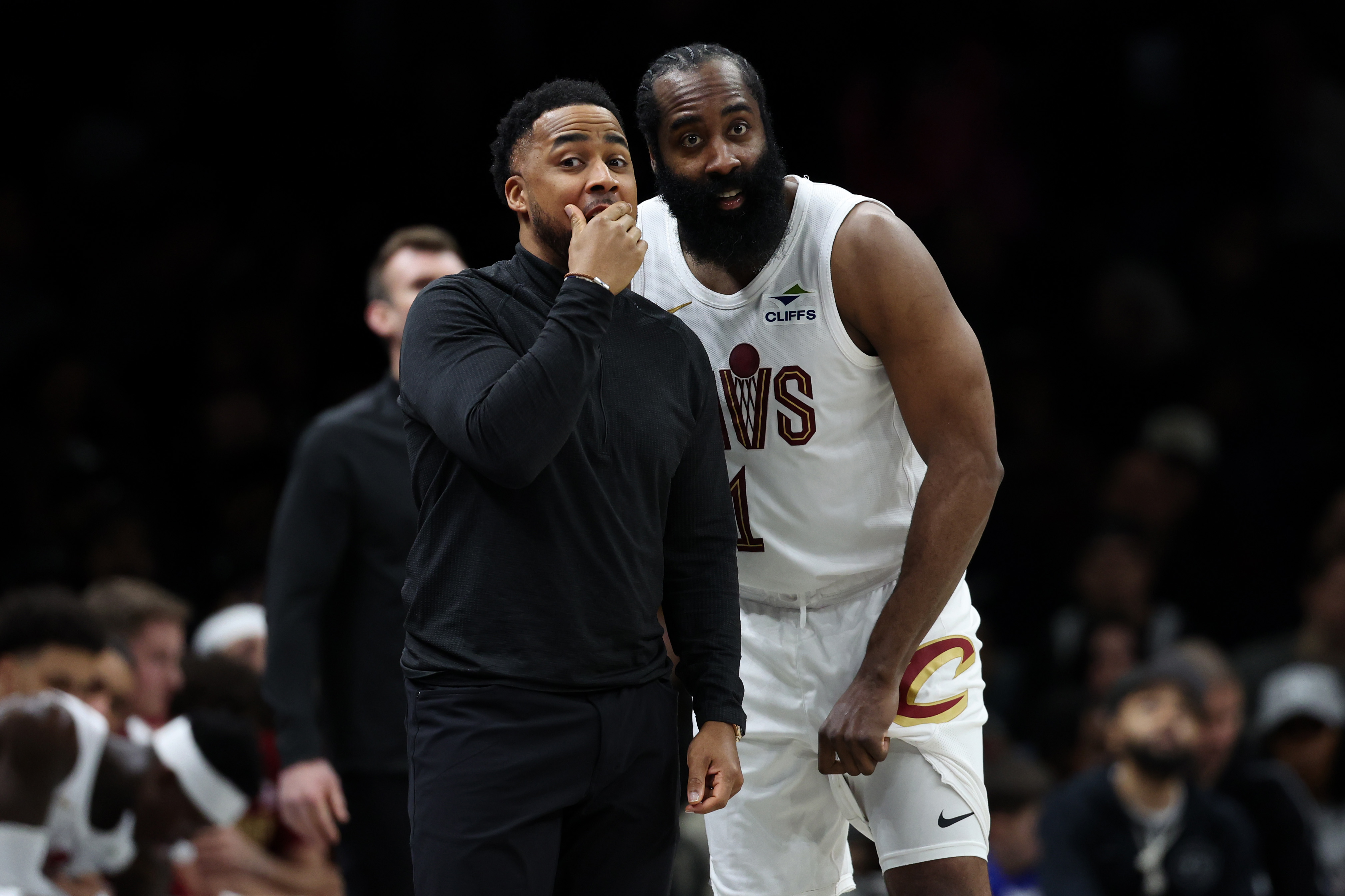 GettyJames Harden #1 of the Cleveland Cavaliers talks to Associate Head Coach Johnnie Bryant during the first half against the Brooklyn Nets at Barclays Center on March 01, 2026 in New York City.