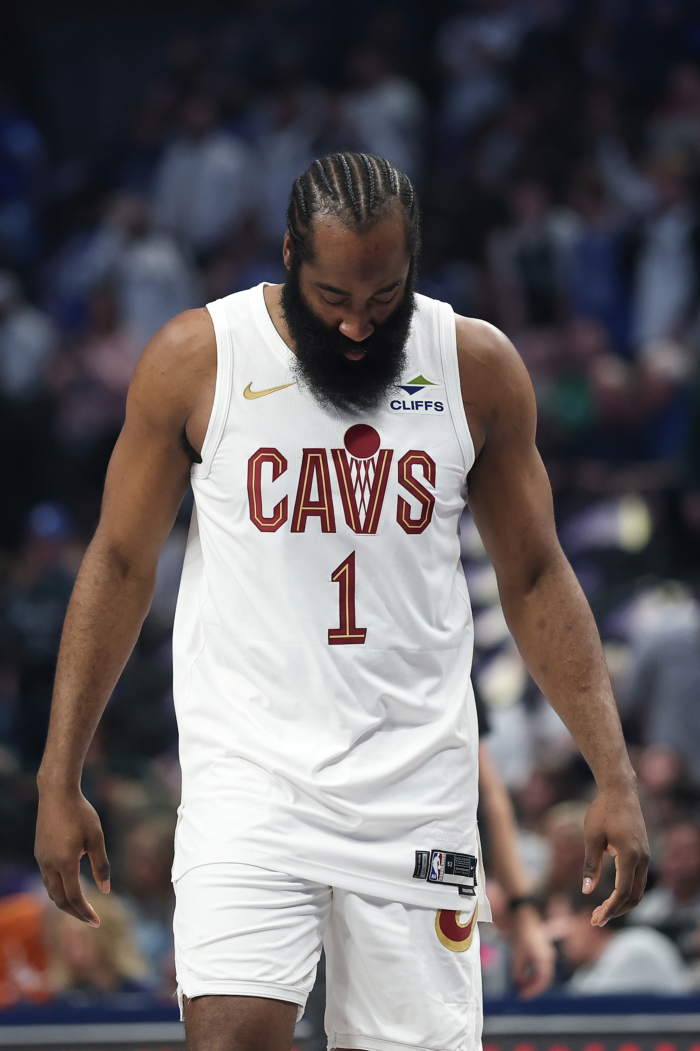 GettyJames Harden #1 of the Cleveland Cavaliers walks backcourt during a game against the Dallas Mavericks at American Airlines Center on March 13, 2026 in Dallas, Texas.