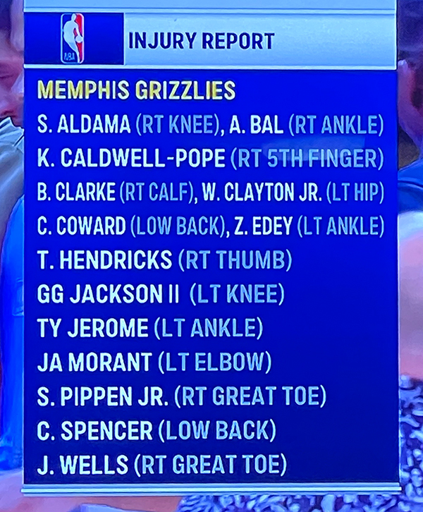 The Grizzlies’ injury report for their final game of the season.