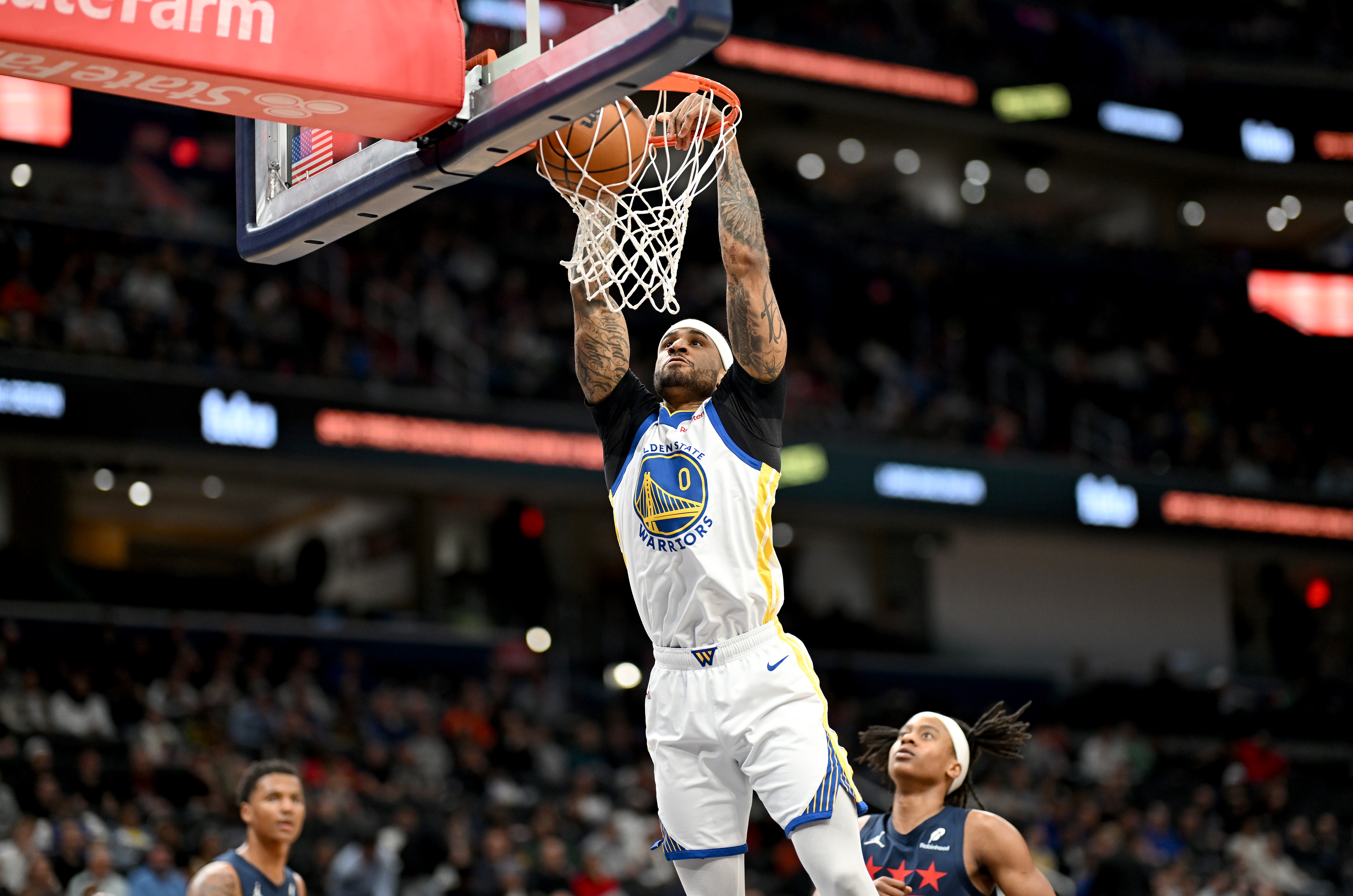 GettyGary Payton II #0 of the Golden State Warriors dunks the ball in the first quarter against the Washington Wizards at Capital One Arena on March 16, 2026 in Washington, DC.