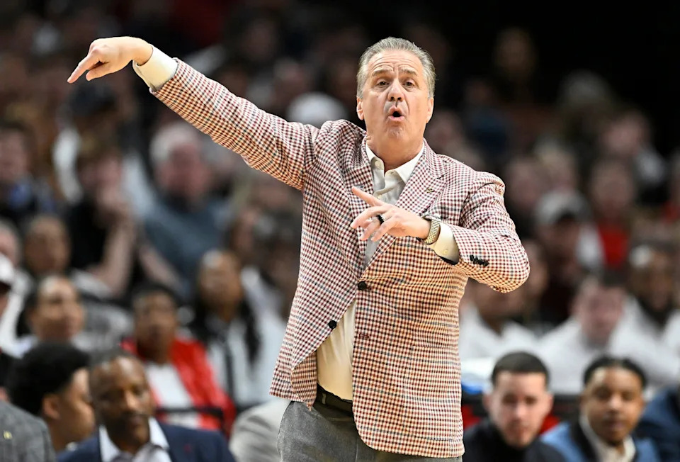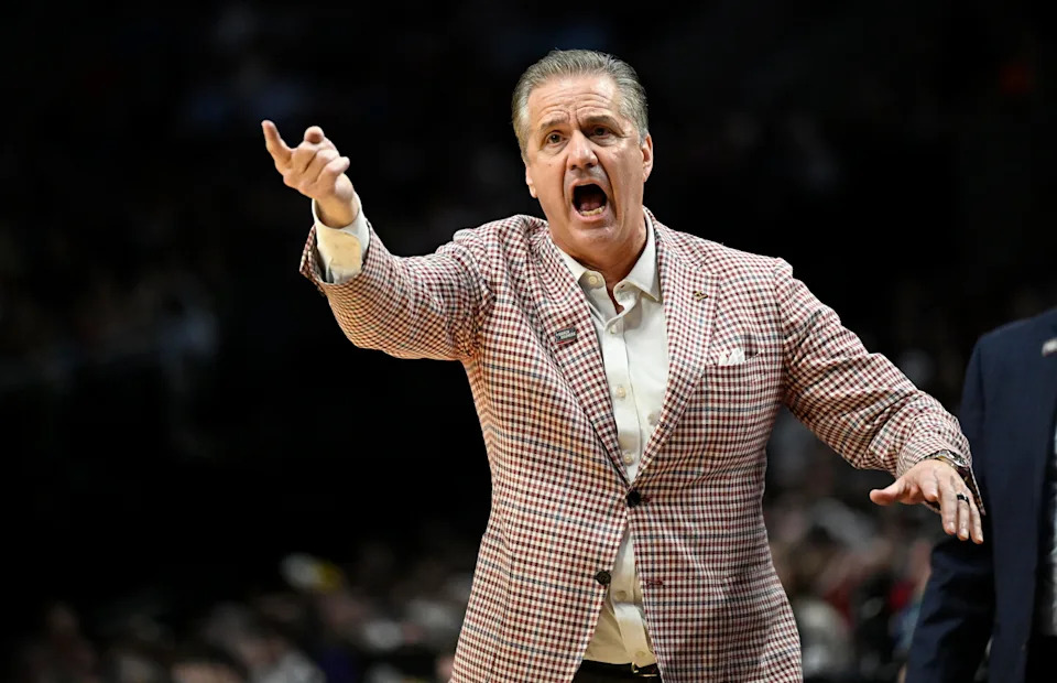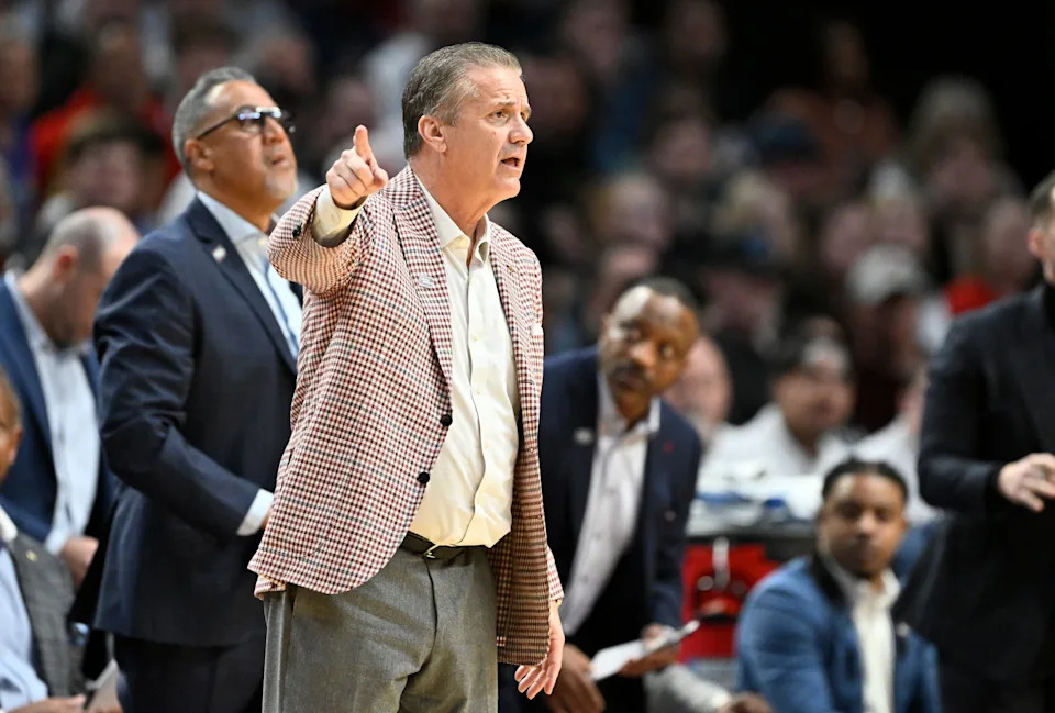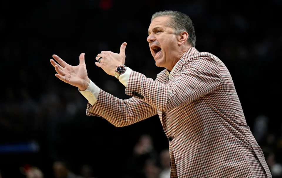 Mar 21, 2026; Portland, OR, USA; Arkansas Razorbacks head coach John Calipari in the first half against the High Point Panthers during a second round game of the men’s 2026 NCAA Tournament at Moda Center. Mandatory Credit: Craig Strobeck-Imagn Images
