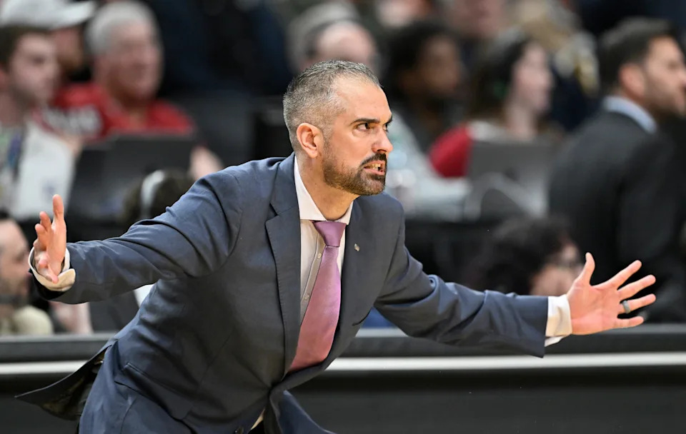 Mar 21, 2026; Portland, OR, USA; High Point Panthers head coach Flynn Clayman in the first half against the Arkansas Razorbacks during a second round game of the men’s 2026 NCAA Tournament at Moda Center. Mandatory Credit: Craig Strobeck-Imagn Images