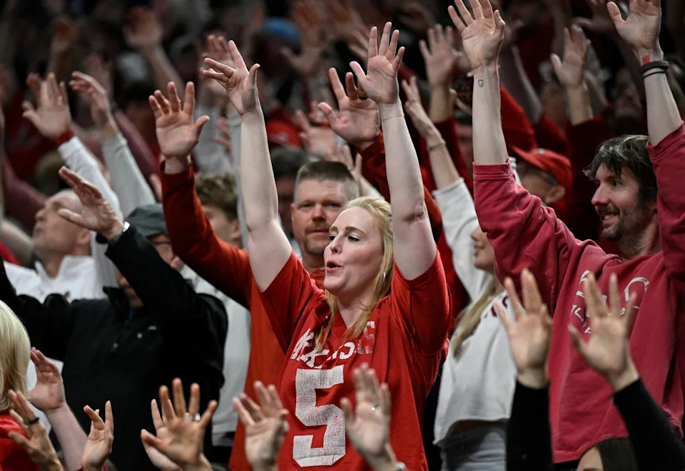 Mar 21, 2026; Portland, OR, USA; Arkansas Razorbacks fans in the second half against the High Point Panthers during a second round game of the men’s 2026 NCAA Tournament at Moda Center. Mandatory Credit: Troy Wayrynen-Imagn Images