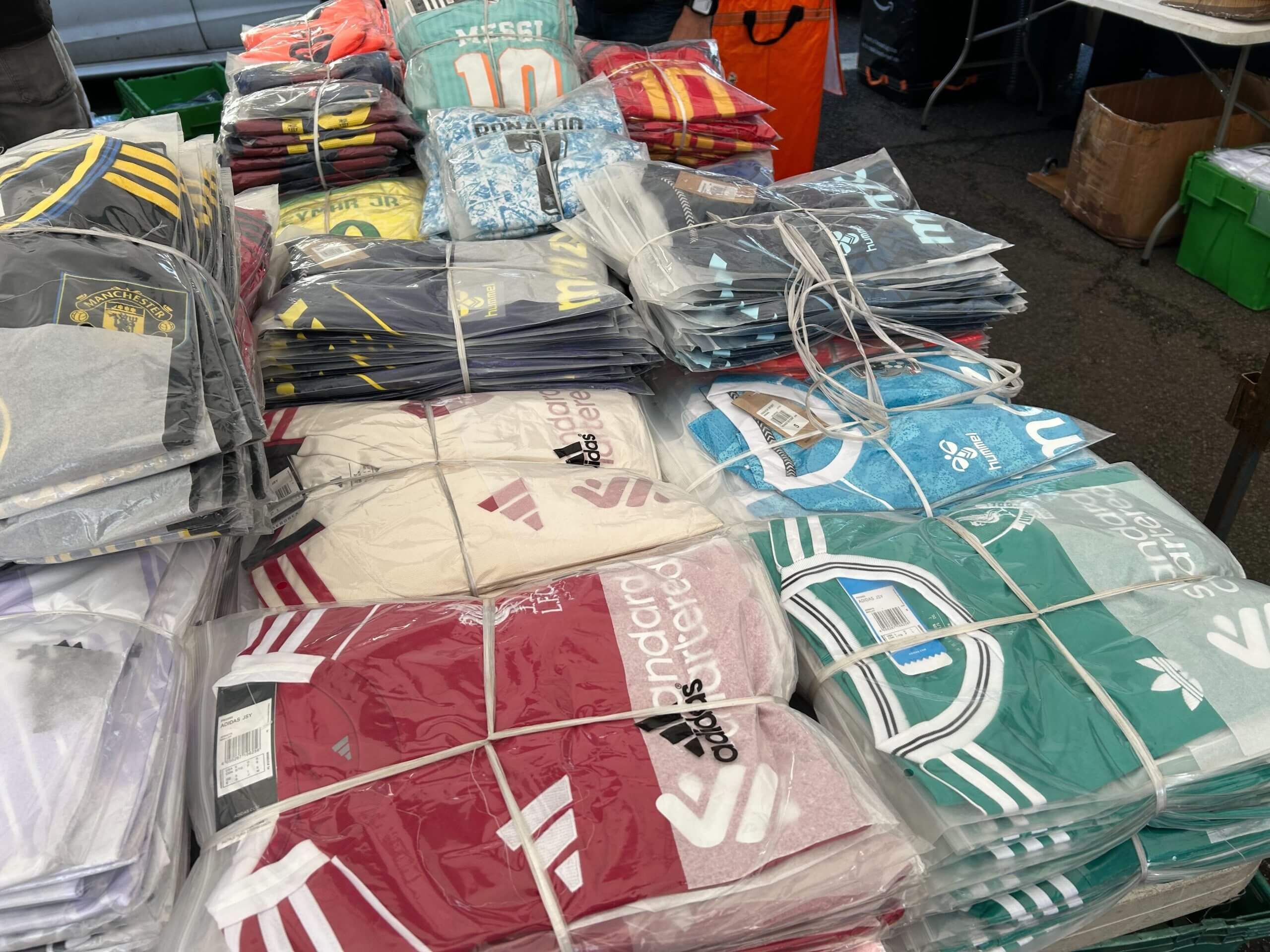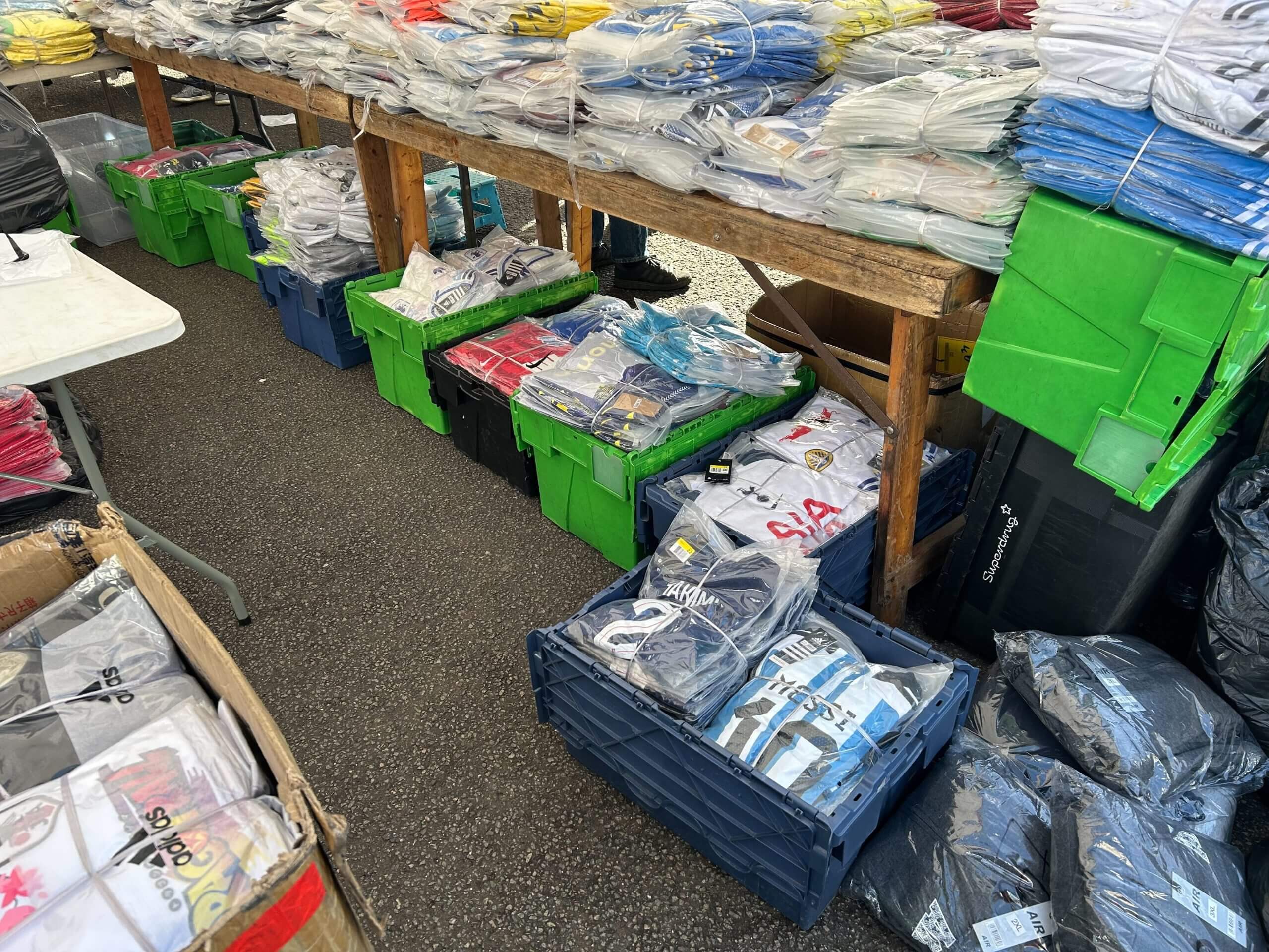 In total 4,433 items were removed from the stall and taken to a secure location to be analysed by experts and verified as counterfeits. All the items — including Premier League and major European club sides — were catalogued and retained for evidence. The haul represents a loss to the legitimate kit market of approximately £400,000 ($540,776).