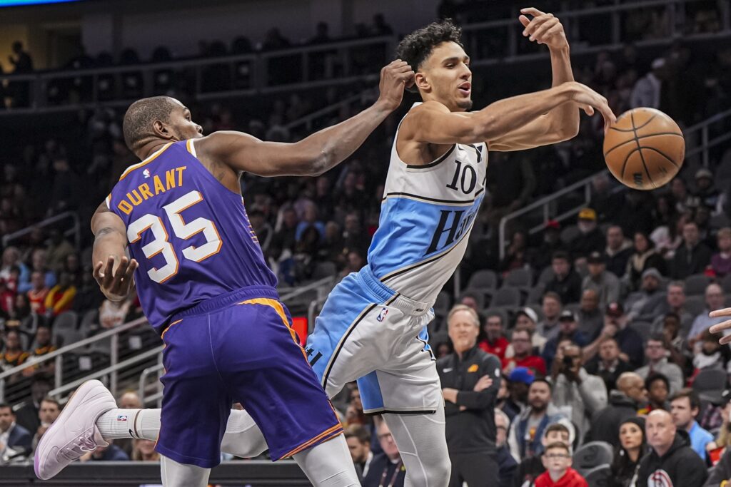 Durant has not played with a promising franchise center since Jarrett Allen with the Brooklyn Nets. Ideally, the 6-foot-11 forward is playing on the wing at the later stages of his career to avoid unnecessary wear and tear on his body. Okongwu established himself as the center of the future last season when he took over the starting role from Capela. Durant could exclusively play at forward if Atlanta finds a backup center for the 2025-26 campaign. Daniels, Durant, Johnson, and Okongwu form a formidable defensive foursome next to Young. They all can switch and possess the ability to jumpstart Atlanta’s past-paced offense off opponent turnovers.