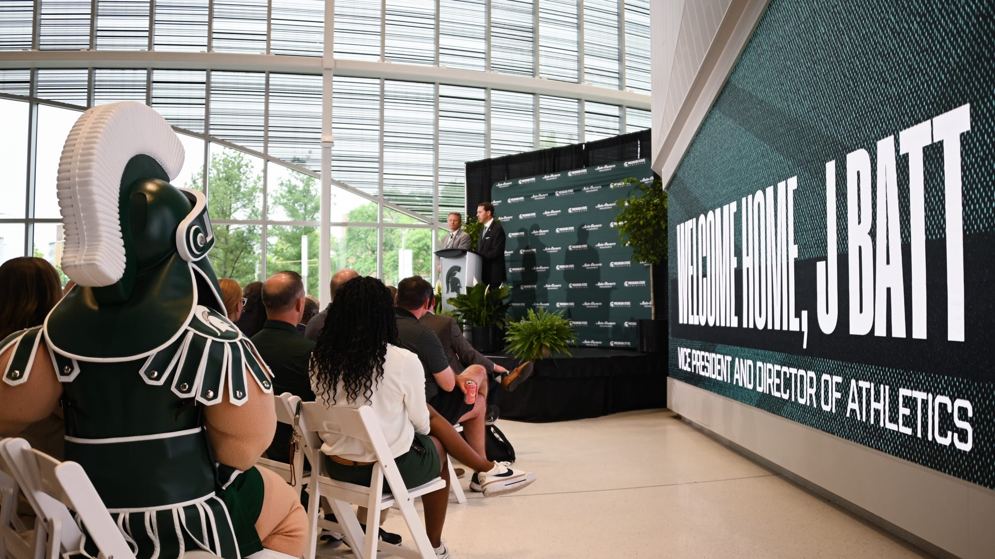 He was present and took the podium at J Batt’s introductory news conference as the university’s new athletic director on Wednesday, June 4, in East Lansing.