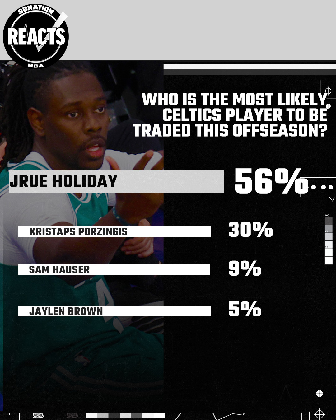 Earlier this week I posed the survey question: Who is getting traded from the Boston Celtics? Your answers are recorded below. Can’t say that the results are a tremendous surprise as Holiday and Porzingis have dominated the trade chatter since the end of the season.