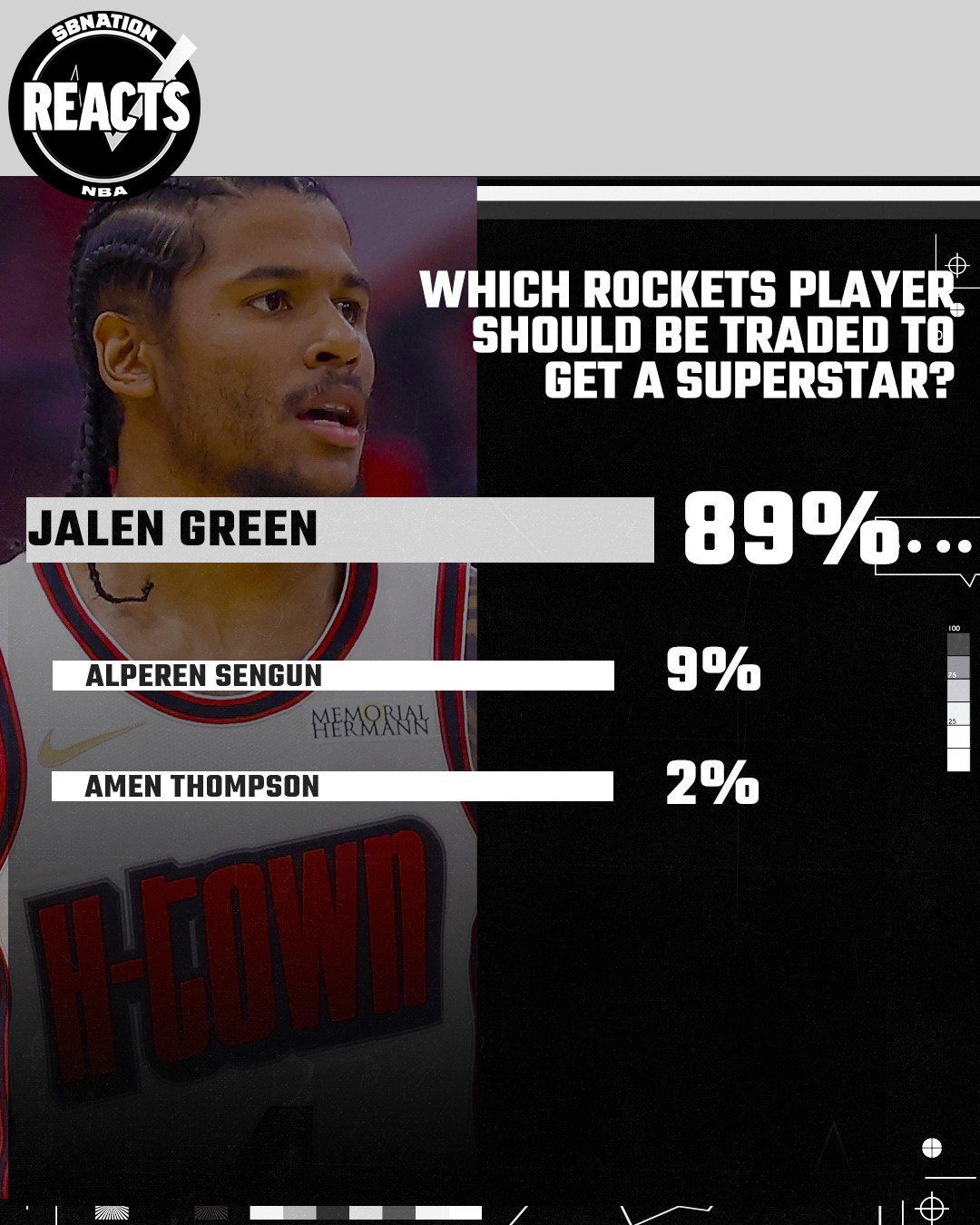 This one ended up clear as day. This week’s question asked if the Rockets traded for a superstar, which one of the trio of Alperen Sengun, Jalen Green and Amen Thompson you’d most want to see go in a potential deal.