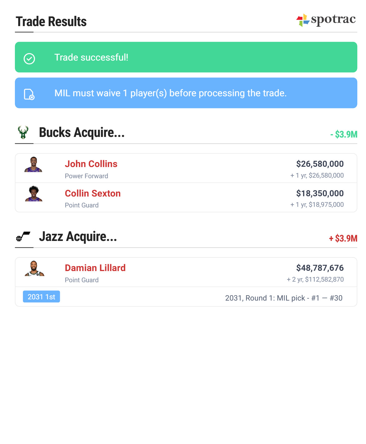 Utah acquires: Damian Lillard, an unprotected 2031 1st, and a pick swap in 2032.