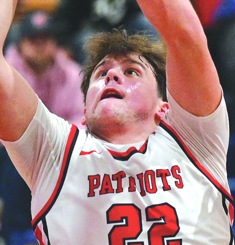 Westwood’s Tristan Miller, left, goes up for a shot during an MHSAA Division 3 district tournament boys basketball game played against Calumet at the Patriots gym in Ishpeming on Wednesday, Feb. 26, 2025. (Photo courtesy Cara Kamps)