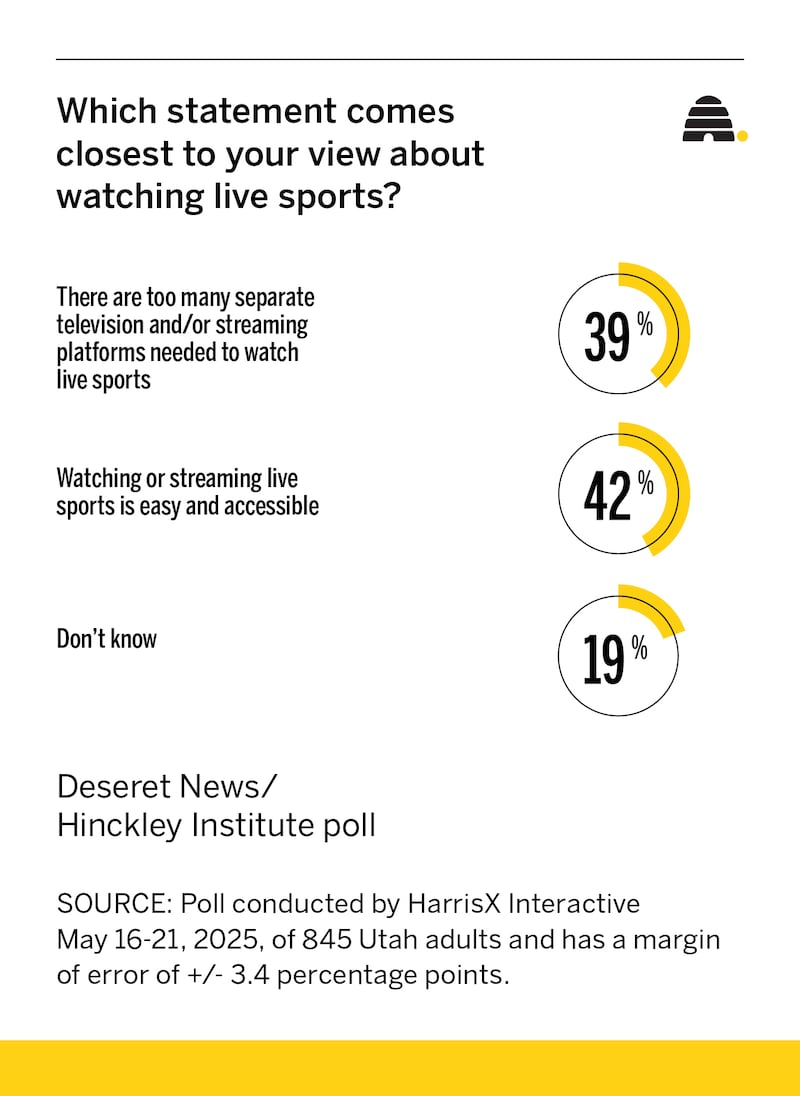 Utahns are split when it comes to their thoughts about viewing live sports on a screen, according to the Deseret News/Hinckley poll.
