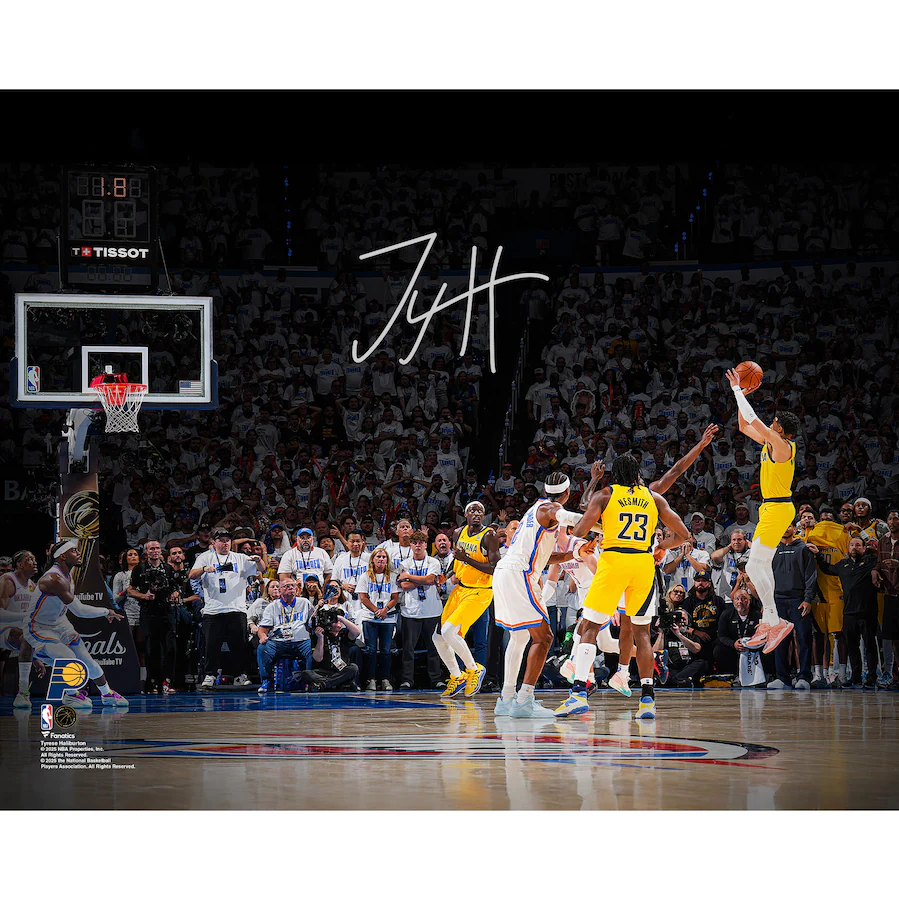 Tyrese Haliburton autographed 2025 NBA Finals Game 1 game-winning shot photograph